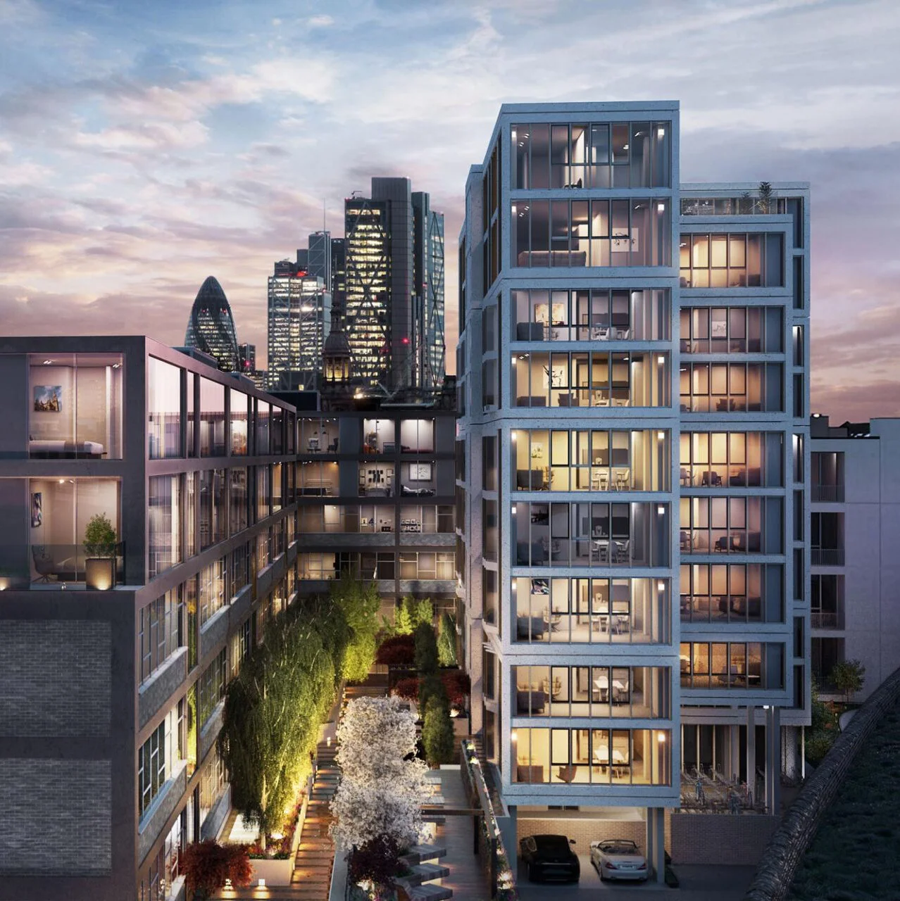 Maximizing The Grove’s renewable energy potential while minimizing consumption, the development’s cooling energy demand is reduced with integrated shading and the high thermal mass of its low-carbon concrete structure including foundations designed to transfer heat away from the buildings. Photovoltaic panels within the optimized building envelope will be complemented by energy supplied via a high-efficiency geothermal heat pump system.